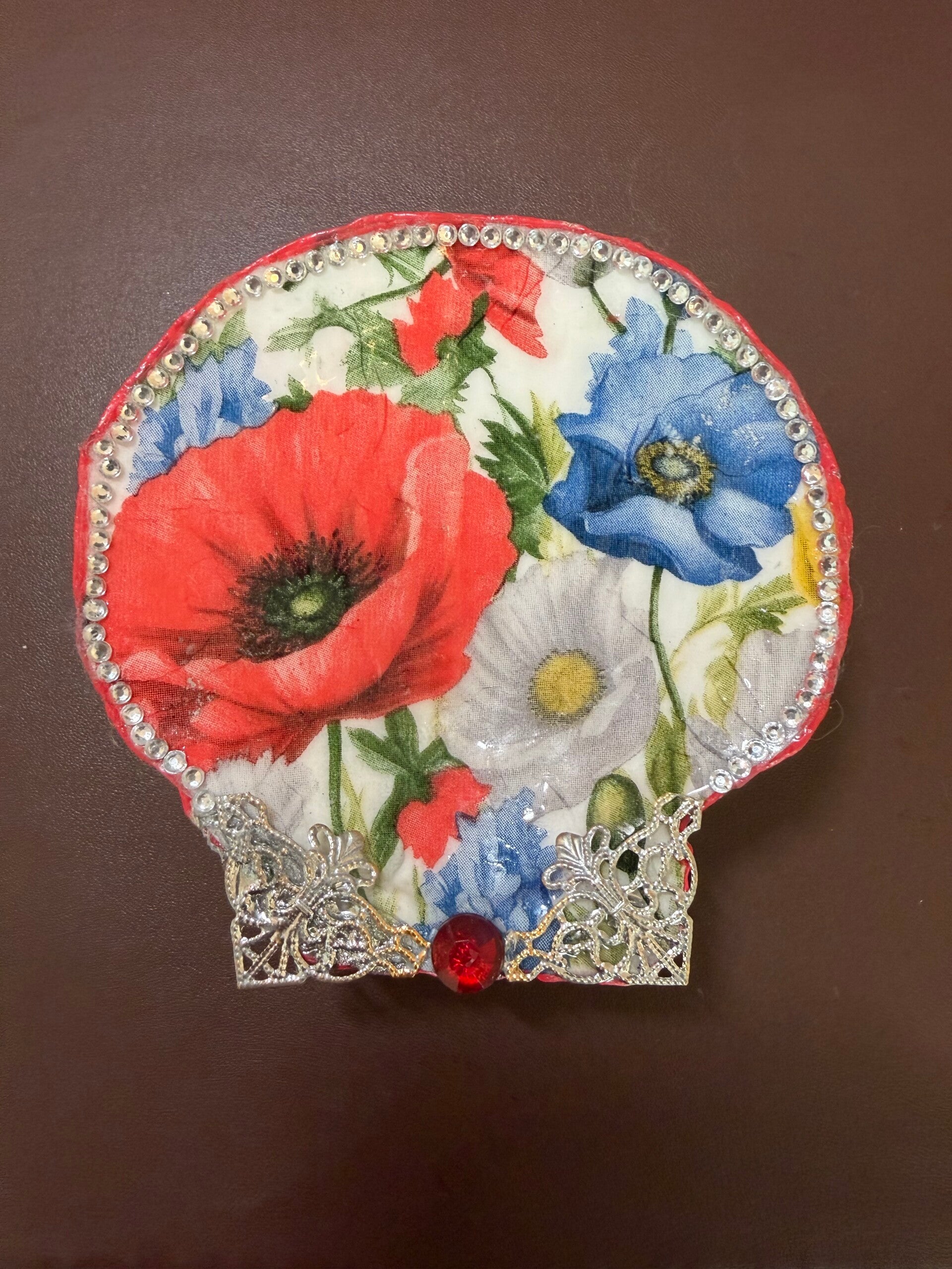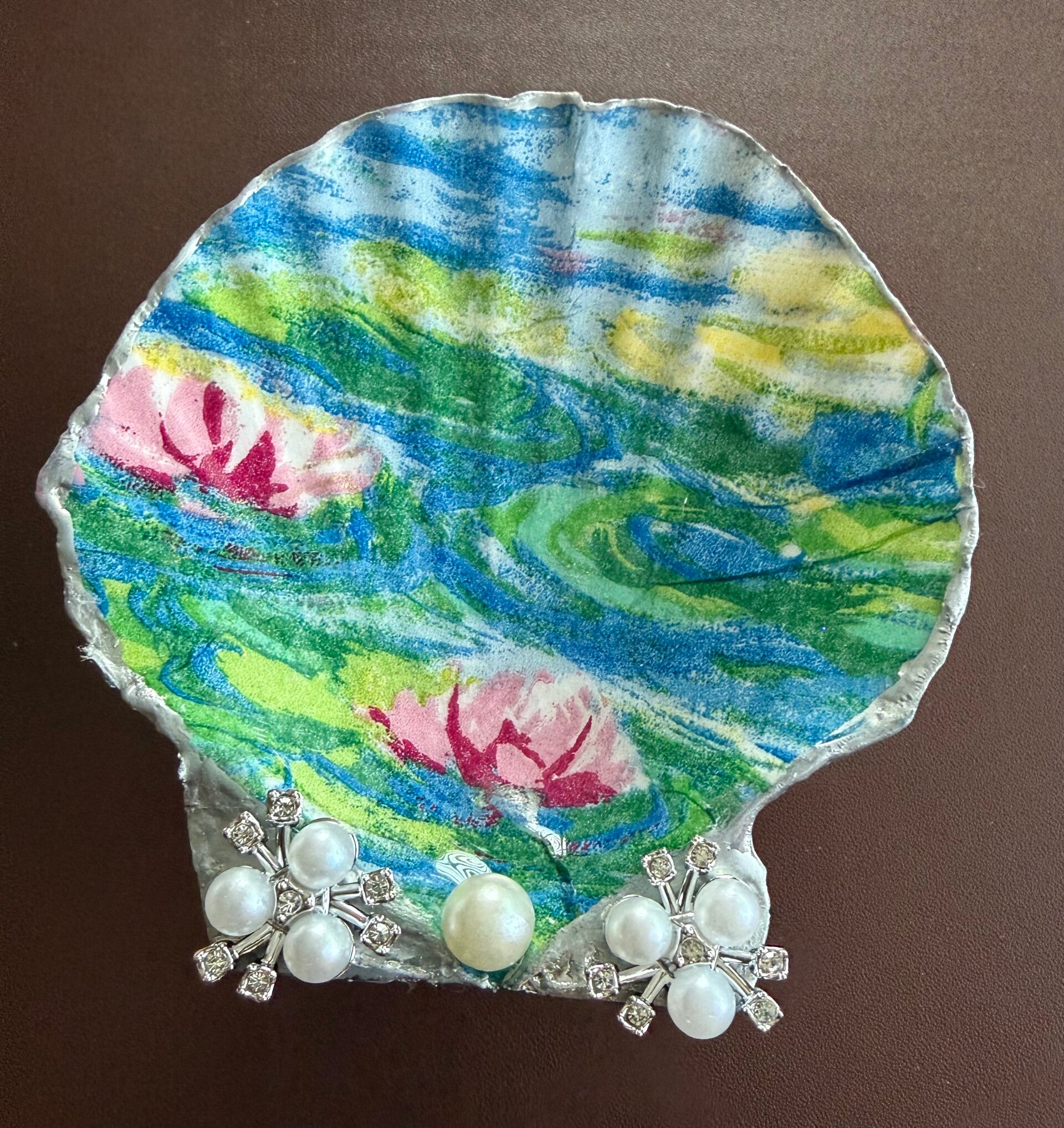 These unique dishes are made from naturally-sourced shells. They are created one at a time, and no two are alike. Each shell is attached to a 3-legged stand, which enables them to be either be displayed horizontally as a little dish for your treasures or vertically as home decor.